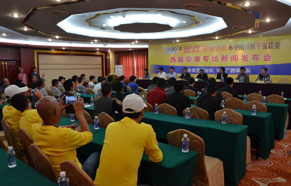 新聞發(fā)布會(huì)由著名美女棋手陳盈[微博]擔(dān)任主持,比賽總策劃曹大元九段首先介紹了賽事背景。山東隊(duì)一直希望把圍棋傳播到更遠(yuǎn)的地方,而西藏也期待承辦高水平的體育賽事,于是兩邊一拍即合,有了這次的合作。能夠跟西藏阜康國(guó)際健康體檢中心合作讓曹大元最擔(dān)心的“高原反應(yīng)”問題得到了解決,比賽就在體檢中心里進(jìn)行,醫(yī)療設(shè)施配套服務(wù)一流,棋手們沒了后顧之憂.