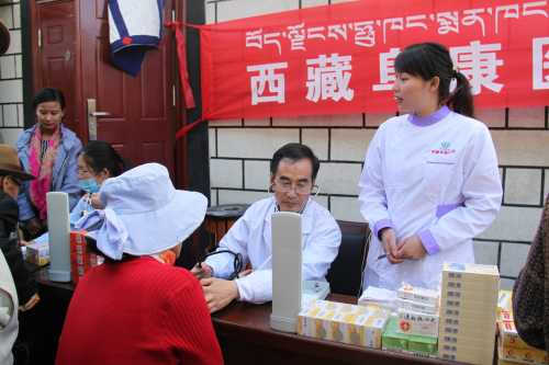 根據(jù)自治區(qū)工商聯(lián)《關(guān)于深化區(qū)直機(jī)關(guān)在職黨員到社區(qū)服務(wù)群眾活動(dòng)》的統(tǒng)一安排:阜康醫(yī)藥有限公司四個(gè)黨支部,在張德才總院長(zhǎng)的帶領(lǐng)下,一行8人在2015年8月8日上午到拉薩市城關(guān)區(qū)嘎瑪貢桑社區(qū)進(jìn)行義診活動(dòng),帶著1.5萬(wàn)余元藥品和便攜式B超,心電圖等。在半天時(shí)間內(nèi)貢義診380余人,為社區(qū)群眾進(jìn)行了測(cè)量血壓、發(fā)放藥品、健康咨詢(xún)等,受到了社區(qū)群眾的熱烈歡迎。期間正在慰問(wèn)群眾的自治區(qū)政協(xié)副主席阿沛晉源,和區(qū)統(tǒng)戰(zhàn)部副部長(zhǎng)、區(qū)工商聯(lián)黨組副書(shū)記李瑞富等領(lǐng)導(dǎo)的高度評(píng)價(jià)。