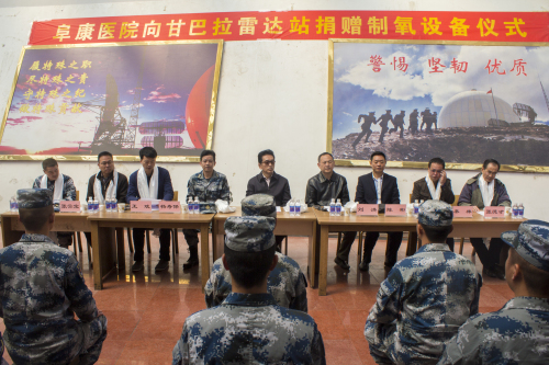 2016年5月11日上午,王斌董事長在捐贈儀式上講到:“阜康醫(yī)院自建院以來,始終秉承‘用我們的知識和良知為人類健康服務’的辦院宗旨,堅持發(fā)展不忘百姓、不忘社會。這次我們向甘巴拉雷達站的子弟兵們捐贈這套制氧設備,希望能夠為大家創(chuàng)造更好的工作、生活環(huán)境,希望能為駐守祖國邊疆的子弟兵們貢獻一份力量,在此,我謹代表阜康集團全體員工向駐守在甘巴拉雷達站的人民解放軍全體指戰(zhàn)員表示最真摯的敬意。”