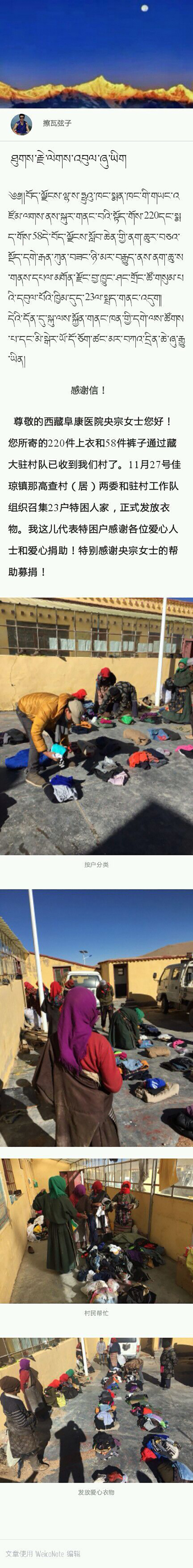 2016年12月1日,當(dāng)微信上一篇由那高查村(居)兩委所發(fā)表的用藏、漢雙語寫下的感謝信漸漸流傳開來,我們才第一次知道了央宗女士一個(gè)人默默行善的事跡。