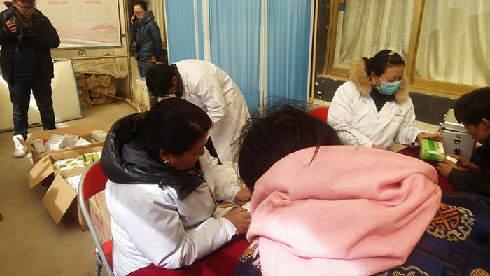 義診活動(dòng)在下午三點(diǎn)半開(kāi)始,前來(lái)就診咨詢的群眾絡(luò)繹不絕。醫(yī)務(wù)人員在為患病群眾把脈號(hào)診、開(kāi)處方的同時(shí),結(jié)合那曲縣羅瑪鎮(zhèn)群眾常見(jiàn)病、多發(fā)病及高海拔地區(qū)的氣候特點(diǎn),給當(dāng)?shù)厝罕娞岢隽巳粘I铒嬍辰ㄗh,在疾病預(yù)防、降低常見(jiàn)病發(fā)病率方面提供生活指南。義診期間,醫(yī)療服務(wù)小分隊(duì)醫(yī)務(wù)人員加班加點(diǎn),共為羅瑪鎮(zhèn)的400余名群眾進(jìn)行了義診檢查,發(fā)放藥品價(jià)值2萬(wàn)余元,在為患病群眾解除病癥、減輕病痛的同時(shí),切實(shí)溫暖了廣大群眾的心。