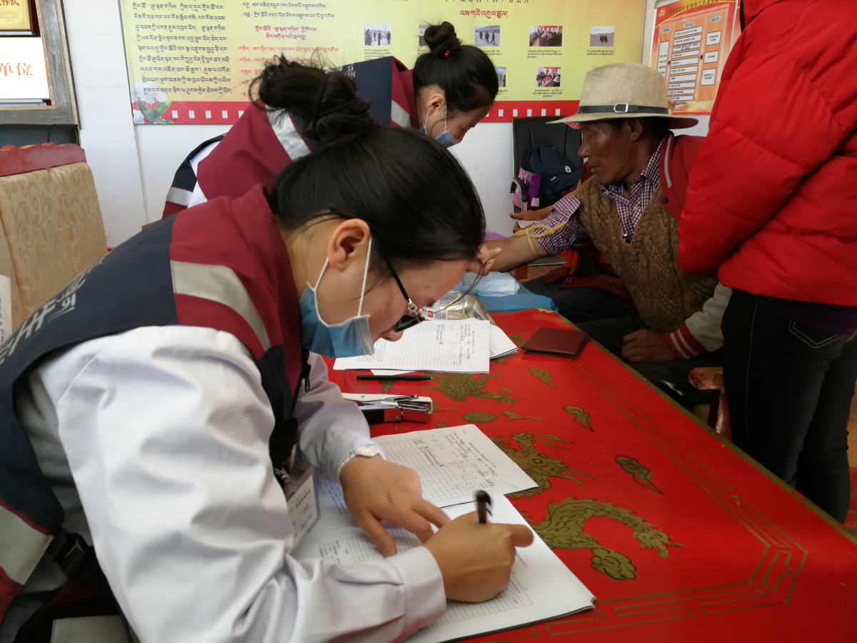 前來檢查的群眾有很多,配合我們工作的還有三位當(dāng)?shù)匦l(wèi)生院的小姑娘,她們主要負責(zé)登記和信息錄入,由于檢查群眾太多,她們的桌子被圍得水泄不通,但她們始終面帶微笑,一絲不茍地小心翼翼登記,生怕工作出現(xiàn)紕漏。