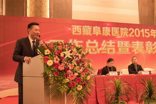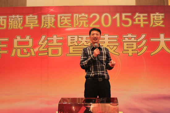 2016年1月19日下午3點半,西藏阜康醫(yī)院2015年度總結(jié)暨表彰大會在香格里拉大酒店隆重舉行,本次2015年度總結(jié)表彰大會由敖德秀副院長主持,王斌董事長、陳彬總經(jīng)理、張德才總院長、劉連福副院長、張治副院長、李君副院長、何靜院長助理等各位院領(lǐng)導(dǎo)及三家醫(yī)院、體檢中心全體員工參加本次會議。