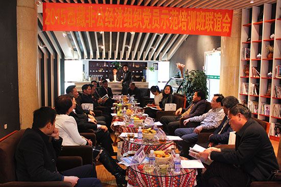 2016年3月25日及3月27日下午,拉薩知名會所企業(yè)座談會及2015西藏非公經(jīng)濟組織黨員示范培訓班聯(lián)誼會先后在西藏阜康(國際)健康體檢中心咖啡廳舉行。拉薩各知名會所企業(yè)代表、2015西藏非公經(jīng)濟組織黨員示范培訓班成員:西藏阜康醫(yī)藥發(fā)展有限公司總經(jīng)理、黨委紀檢委員陳彬,西藏阜康醫(yī)藥發(fā)展有限公司黨支部青年委員、董秘李霞,西藏雅喜實業(yè)公司黨支部副書記、董秘雷滿興,拉薩遠大建材有限公司支部副書記周西平,拉薩市城關(guān)區(qū)億鑫廢舊回收有限公司黨支部書記李曉飛,江蘇商會常務理事梁鉅松,拉薩市申新商貿(mào)有限公司董事長趙萬才,星宇通訊器材有限公司黨支部書記王金剛,西藏華鈺礦業(yè)集團黨委副書記劉志峰,西藏浙江商會黨支部書記陳炬亦,西藏蓋天力機械有限公司總經(jīng)理王東勝,西藏百益大酒店總經(jīng)理、法人代表曹光亮,拉薩鼎業(yè)制粉有限公司副總經(jīng)理郭倩,西藏泰成餐飲有限公司黨支部負責人孫宏霞,西藏易境旅游景觀設(shè)計有限公司黨支部書記李川及我院扎西頓珠副院長,敖德秀副院長、黨委專職副書記,張治副院長,各醫(yī)院辦公室主任等先后參加了兩次會議。