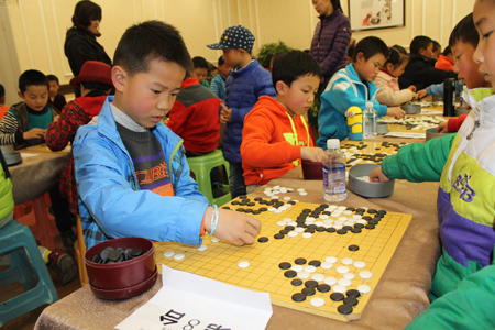 據(jù)棋院陳學(xué)滸老師介紹,拉薩棋院是西藏自治區(qū)的正規(guī)棋院,于2015年3月26日在拉薩市郵政賓館正式掛牌成立,棋院目前共有三名老師執(zhí)教,100名學(xué)員。陳學(xué)滸老師講到,圍棋比賽非常鍛煉參賽選手意志,選手在前一輪比賽結(jié)束后不久立馬參加下一輪比賽,很多選手尚未從上一輪失敗的陰霾中走出來就要參加下一輪比賽,不會(huì)調(diào)節(jié)情緒的選手大多會(huì)輸?shù)艚酉聛淼谋荣?,所以圍棋比賽很容易看出選手的心態(tài)及意志。比賽現(xiàn)場(chǎng)筆者也觀察到,小朋友聚在一起大多很鬧騰,小孩們總是不停地跑來跑去嬉笑打鬧,整個(gè)棋院像是過節(jié)般熱鬧,但是比賽一開始,他們立馬安靜下來,個(gè)個(gè)屏息凝神、沉著冷靜架勢(shì)甚是老練,完全沒有了剛才的鬧騰勁兒。由此筆者感慨老祖宗留下來的東西果然是寶貝,圍棋不僅能磨練人的意志,增強(qiáng)人的全局意識(shí),還能讓人靜下心來認(rèn)真思考,學(xué)習(xí)圍棋確實(shí)是人生比較正確的選擇。