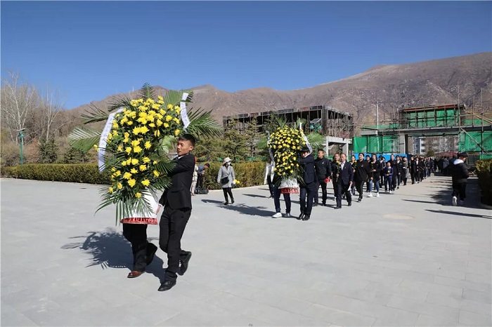 儀式結(jié)束以后,全體黨員整齊肅穆地走過紀(jì)念碑,懷著對革命先烈的崇敬之情瞻仰了烈士陵墓,同時聽取引導(dǎo)人員關(guān)于革命烈士的事跡介紹。在烈士英名墻下,大家仔細瀏覽烈士的名字;在領(lǐng)導(dǎo)干部的楷??追鄙镜哪贡?,大家深深鞠躬表達對革命先烈的崇敬與追思;面對一排排長眠的革命烈士,大家深切感受黨的事業(yè)所經(jīng)歷的艱辛與付出的巨大犧牲,深深思考作為一名新時代的中國共產(chǎn)黨員應(yīng)該如何肩負起歷史賦予的使命,在黨中央和區(qū)黨委的堅強領(lǐng)導(dǎo)下,為西藏的穩(wěn)定發(fā)展、為中華民族的偉大復(fù)興貢獻自己的力量,堅決做一名無愧于黨和人民、無愧于時代的合格共產(chǎn)黨員。