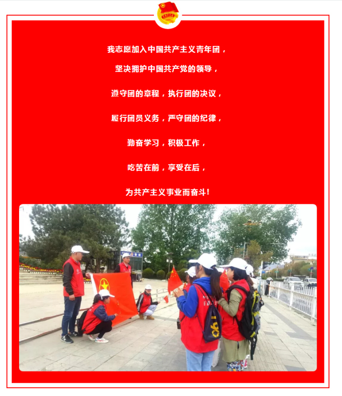 上午9時(shí),公司共產(chǎn)主義青年團(tuán)全體成員在紀(jì)念碑前重溫中國(guó)共產(chǎn)主義青年團(tuán)入團(tuán)誓詞: