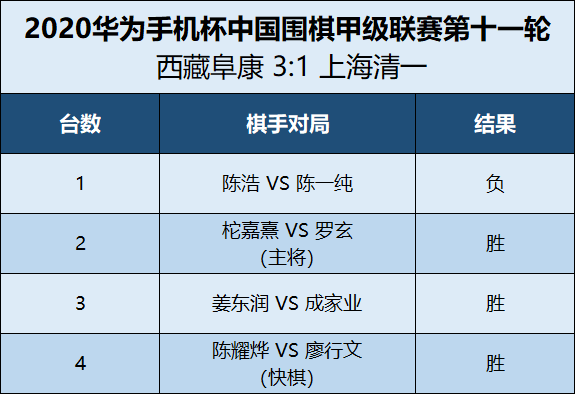 2020華為手機(jī)杯中國(guó)圍甲聯(lián)賽第十一輪 西藏阜康 VS 上海清一