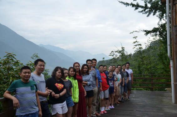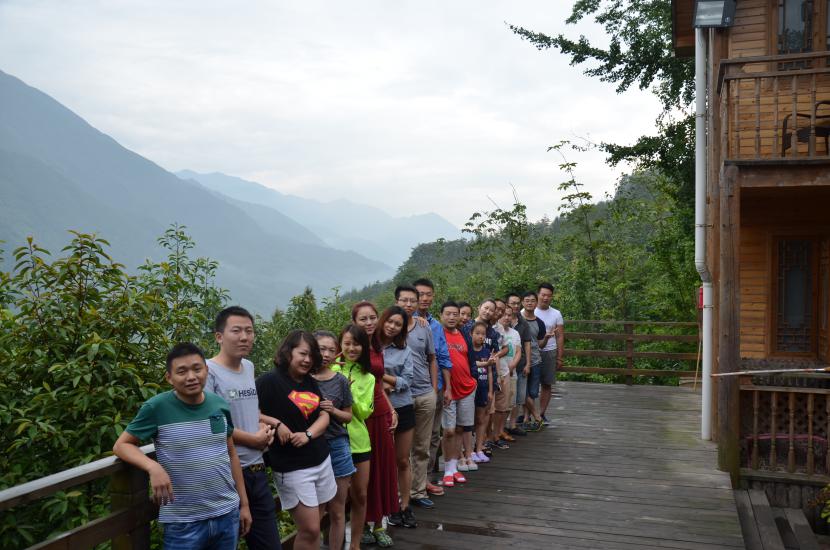 2016年8月25日,在精心的策劃準(zhǔn)備后,全體員工向距離成都70多公里的都江堰市虹口鄉(xiāng)出發(fā),錯開出行高峰期,很快就到達(dá)了都江堰市區(qū),再經(jīng)過近10余公里的綿延的盤山路,車隊首先到達(dá)虹口區(qū)山頂(虹口區(qū)是著名的原生態(tài)保護(hù)區(qū)),雖然已是沉陽,但一陣陣清新的空氣仍伴隨習(xí)習(xí)微風(fēng)撫面而來,久違了美麗的群山,大家在山頭稍作停息,眺望云霧環(huán)繞的眾山,心曠神怡,不斷的拍照留念,捕捉這心動的一刻。