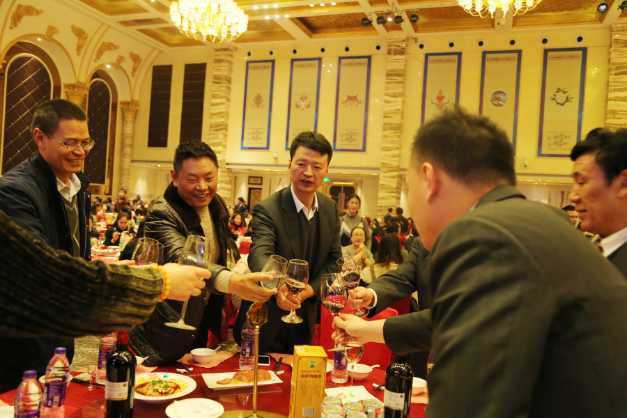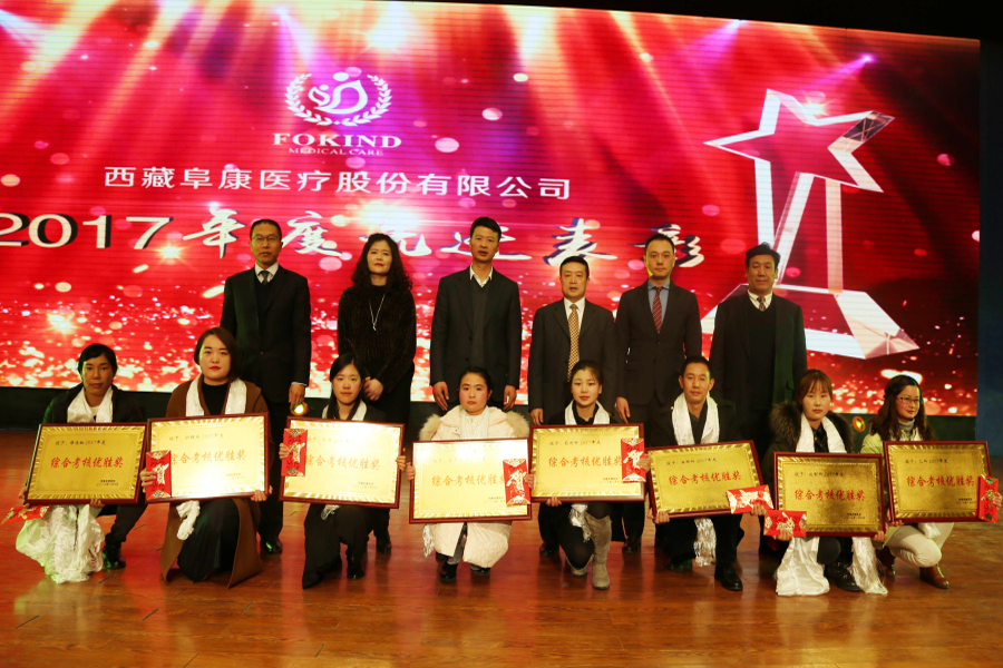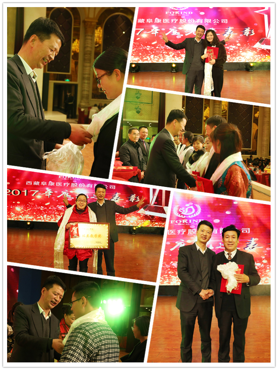 晚宴尾聲,董事長王斌邀請所有院級領(lǐng)導(dǎo)上臺共同舉杯說:“希望大家在新的一年繼續(xù)沿著創(chuàng)新的道路團(tuán)結(jié)一致、規(guī)范管理、用心服務(wù),開源節(jié)流地做好自己本職和醫(yī)院的工作。我相信,在各位阜康同仁的共同努力下,2018年我們一定會保質(zhì)、保量完成工作計劃。為保障西藏自治區(qū)廣大人民群眾的身體健康做出新的更大的貢獻(xiàn),促進(jìn)醫(yī)院健康、持續(xù)、穩(wěn)步地向前發(fā)展,更上一層樓,再鑄新輝煌! ”