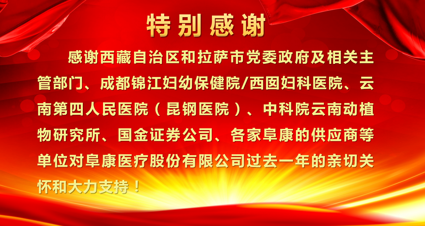 我之存在,因為有你;百年阜康,感恩有您。感恩是一種態(tài)度、一種美德、一種情懷!不忘初心、砥礪前行,感謝你們的一路陪伴,阜康的輝煌離不開每一位阜康人的奉獻(xiàn),雄關(guān)漫道真如鐵,而今邁步重頭越!2018年將是阜康騰飛的一年,在各級領(lǐng)導(dǎo)關(guān)心下,各位同仁支持下,阜康一年更比一年好!以十九大精神為指導(dǎo),努力打造“團(tuán)結(jié)、創(chuàng)新、規(guī)范、節(jié)約、用心”五位一體的現(xiàn)代化醫(yī)院!為西藏人民群眾解決看病遠(yuǎn)、看病難、看病貴的問題,全心全意為西藏人民健康服務(wù)!