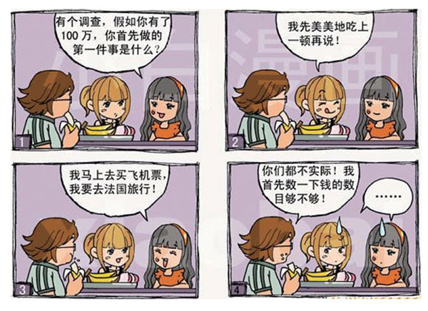 有一個富婆帶著自己的狗在街上走。經(jīng)過天橋時看見一個乞丐,她便一心去奚落一下他。她走過去說:“你對我的狗叫一聲爸,我就給你100元。”氣丐說:“要是我叫10聲呢?”富婆不耐煩地說:“笨蛋,那不就是1000元嘍。”于是,氣丐就對著富婆的狗叫:“爸,爸,爸,爸,爸,爸,爸,爸,爸。”周圍的人都來觀看,那位富婆從手袋里拿出900元給他。于是,那位乞丐對著富婆說:“謝謝,媽!”