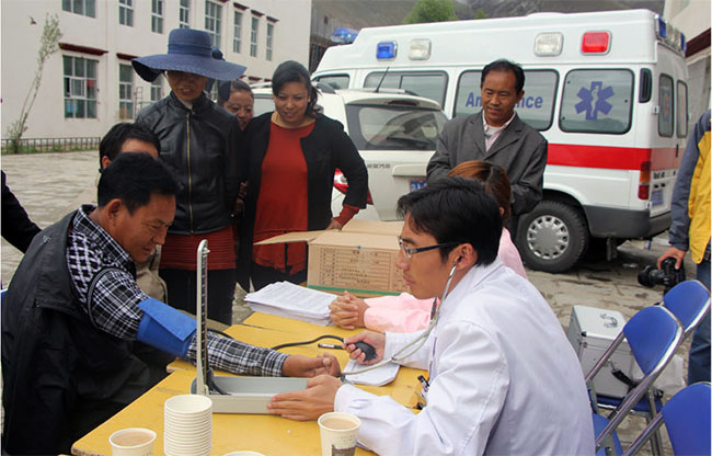 2013年6月25日早上七點(diǎn),西藏阜康國(guó)際體檢中心、阜康心腦血管分院的醫(yī)護(hù)人員與《拉薩晚報(bào)》的記者共同深入“最美鄉(xiāng)村教師”侯選人所在的學(xué)校,為常年工作在鄉(xiāng)村教育第一線上的老師們免費(fèi)體檢,為他們送去健康。