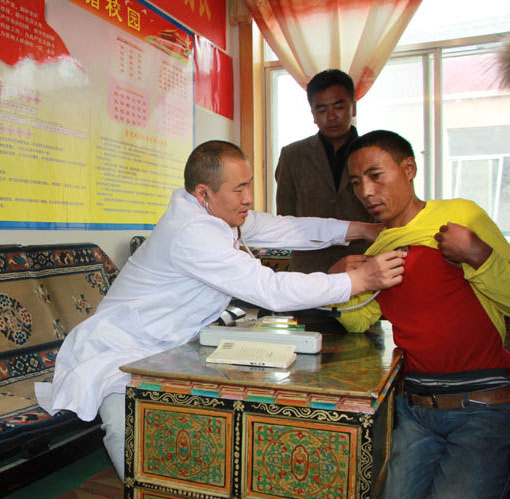 義診過程中,后勤工作人員巴桑老師稱自己腰部一直感覺不適,卻又找不到病因。經(jīng)過細致地診斷,唐醫(yī)生初步確定巴桑老師患有慢性膽囊炎、心肌缺血和腰椎間盤突岀等病癥。隨后,唐醫(yī)生向巴桑老師發(fā)放了足量的對癥治療藥物,并細心地向巴桑老師講解了每種藥物的服用方法。