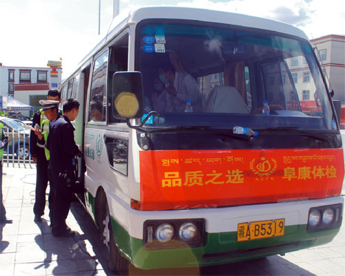 2014年6月1日上午,西藏阜康(國(guó)際)健康體檢中心派出免費(fèi)體檢車(chē),為拉薩市公安局交警隊(duì)東西南北郊的執(zhí)勤民警們及女子中隊(duì)做了免費(fèi)體檢。
