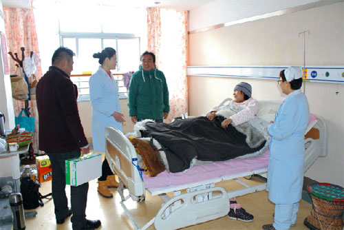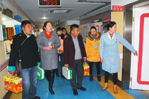 2015年2月19號(hào),西藏阜康醫(yī)院、阜康醫(yī)院婦產(chǎn)兒童分院、阜康醫(yī)院心腦血管分院及阜康(國(guó)際)健康體檢中心在院領(lǐng)導(dǎo)的帶領(lǐng)下,去慰問(wèn)不能出院和家人團(tuán)聚的患者。醫(yī)院為所有住院患者送上了一份新鮮的水果禮盒及一箱純牛奶。