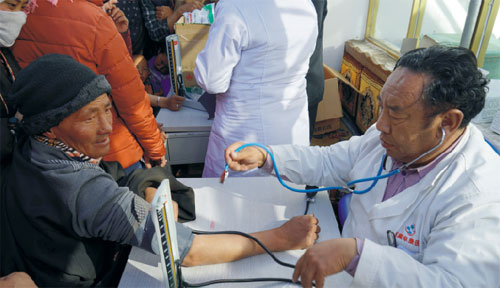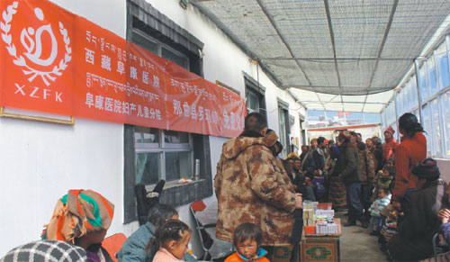 2015年3月13日,西藏自治區(qū)政協(xié)聯(lián)合西藏阜康醫(yī)院、西藏阜康醫(yī)院婦產(chǎn)兒童分院赴那曲羅馬鎮(zhèn)、古路鎮(zhèn)開展“送醫(yī)送藥,愛心義診”活動。免費義診360余人,共計發(fā)放價值23000余元的常規(guī)藥品。
