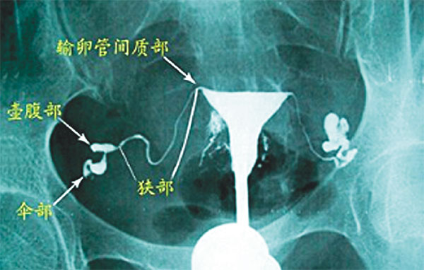 子宮輸卵管造影(HSG)是推薦常用的輸卵管通暢度檢查的方法。通過造影管向?qū)m腔內(nèi)及輸卵管注入造影劑,在X線透視下觀察造影劑通過宮腔及輸卵管情況并攝X光片,了解輸卵管是否通暢和宮腔形態(tài),準(zhǔn)確率可達(dá)80%。造影劑包括油劑(碘化油)、水溶性(泛影葡胺、碘海醇)。碘化油密度大,顯影效果好,對(duì)于輸卵管還有一定的治療作用。