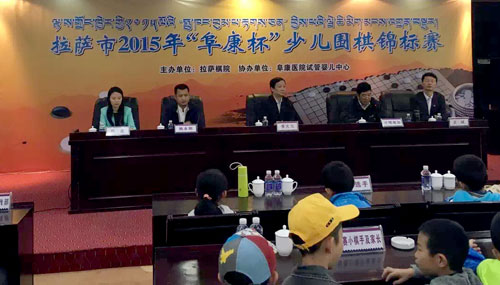 2015年10月6日上年,拉薩市2015年“阜康杯”少兒圍棋錦標賽開幕式于拉薩棋院正式舉行。出席本會議的領(lǐng)導及嘉賓有區(qū)黨委常委、拉薩市委書記齊扎拉,國手九段、山東圍棋隊總教練、拉薩棋院名譽院長、名譽總教練曹大元,拉薩市政府副市長計明南加,中央電視臺圍棋欄目主持人、天元圍棋頻道主持人、拉薩市棋院教練陳盈,西藏自治區(qū)體育局群體處處長姚永剛,以及拉薩棋院院長、西藏阜康醫(yī)藥發(fā)展有限公司董事長王斌。