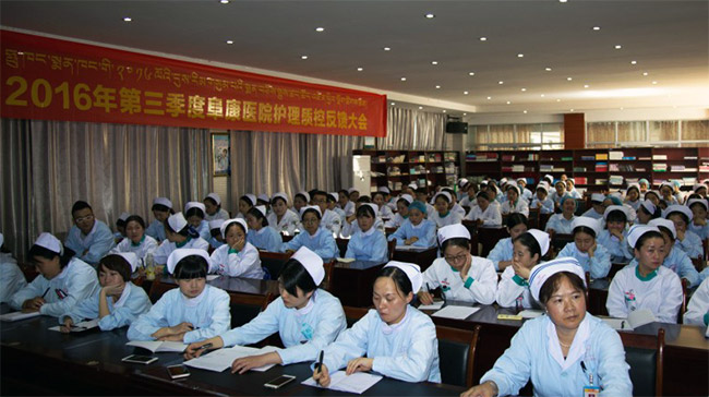 2016年9月23日下午16點(diǎn)整,西藏阜康醫(yī)院2016年第三季度護(hù)理質(zhì)量反饋大會(huì),在阜康婦產(chǎn)兒童分院四樓會(huì)議室進(jìn)行。阜康醫(yī)院、阜康婦產(chǎn)兒童醫(yī)院、阜康心腦血管醫(yī)院及阜康體檢中心全體護(hù)士共130人參加了本次會(huì)議,會(huì)議由敖德秀總院長(zhǎng)主持,在會(huì)議上院長(zhǎng)就2016年我院護(hù)理質(zhì)控工作中存在的問(wèn)題進(jìn)行了分析并提出對(duì)策。
