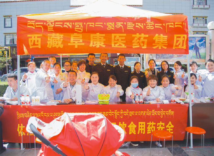2016年10月14日上午,西藏阜康醫(yī)藥發(fā)展有限公司組織16名醫(yī)護(hù)人員于拉薩市宇拓路迎賓館旁建立免費(fèi)義診宣傳點(diǎn),積極參加由拉薩市食品藥品監(jiān)督局牽頭組織的“全國安全用藥月”主題宣傳活動(dòng),宣傳藥物濫用的危害、普及安全用藥知識(shí)、引導(dǎo)廣大社會(huì)群眾樹立安全合理用藥的意識(shí),同時(shí)免費(fèi)為過往的群眾測(cè)血壓、血糖,免費(fèi)看病及發(fā)放維生素、鈣片、風(fēng)濕及心腦類等價(jià)值一萬兩千余元藥品。
