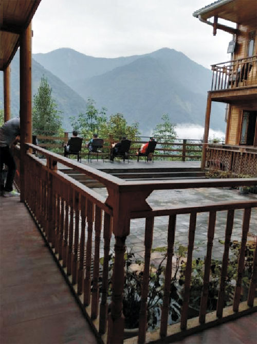 山窮水盡疑無路,柳暗花明又一村。幾個小時的奔波終于到達目的地,一個錯落有致的小村莊。大家歡聚一堂,大快朵頤,雖然廚師并不專業(yè),但勝在食材天然。酒足飯飽之后,大家沿著木梯下樓進行飯后娛樂。我坐在露天陽臺的藤椅上休息,一陣清風(fēng)拂過,伴著竹林搖曳的聲音,剎那間居然有種“倚樓聽風(fēng)雨,淡看江湖路”般微醺的感覺。