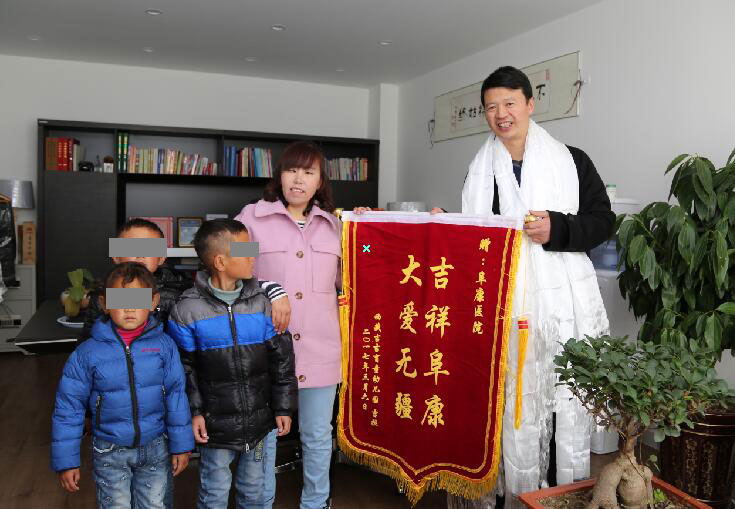 2016年,阜康醫(yī)院與吉吉盲童幼兒園建立幫扶關(guān)系,幫扶對(duì)象無償提供醫(yī)療救治,為該園在醫(yī)院開展綠色就醫(yī)通道,并捐助1萬元慰問金。為了表達(dá)對(duì)王斌董事長(zhǎng)的感激之情,2017年3月10日,在吉拉園長(zhǎng)的帶領(lǐng)下,幼兒園小朋友來到醫(yī)院為王斌董事長(zhǎng)獻(xiàn)上哈達(dá),并送上錦旗“吉祥阜康 大愛無疆”。