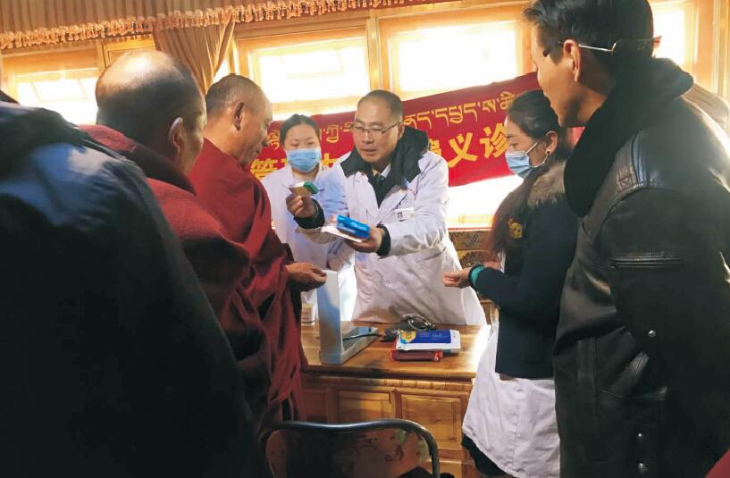 11月28日上午,我院慢病管理中心組織5位醫(yī)護人員在甘丹寺共計為200多名僧侶進行免費測血壓、血糖、氧飽和度以及發(fā)放常見疾病的藥物。義診期間得到了羅布次仁處長、索次主任的大力支持與幫助。體檢完畢后,羅布次仁處長帶領醫(yī)護人員參觀了寺廟的主殿,并贈予甘丹寺主殿的金色哈達,以表對阜康工作人員的感激之情。